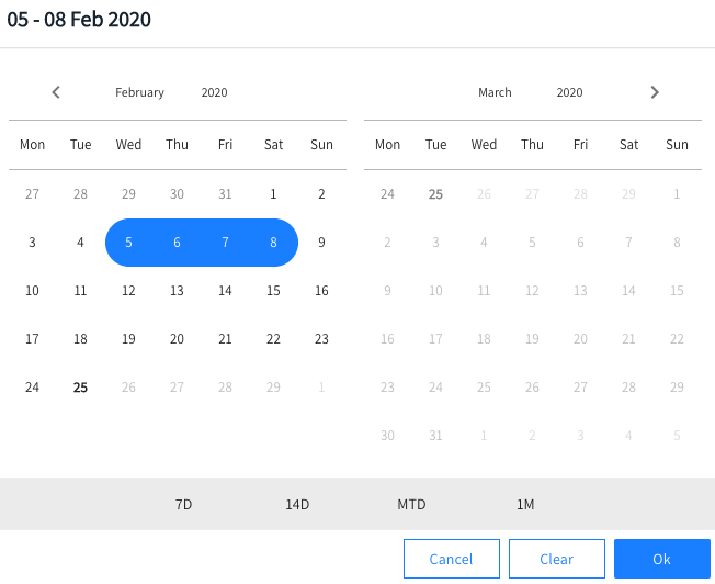 - Custom: You can also create a custom time period by clicking on the calendar's start and end dates.